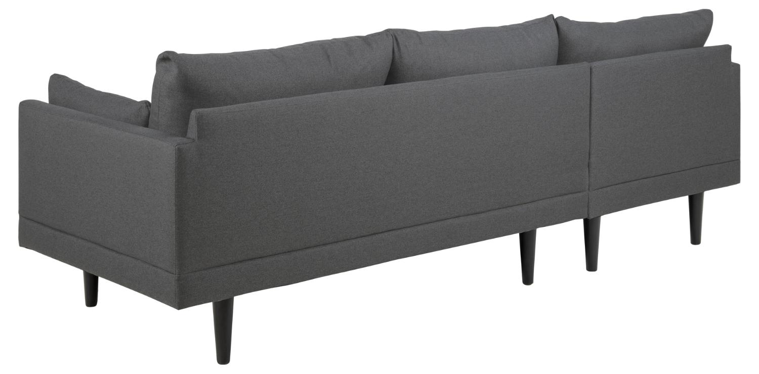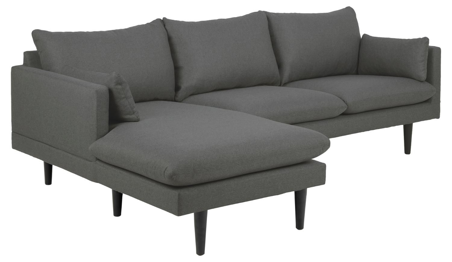 SOFAKONCEPT Cozy 2 pers. sofa, m. venstre chaiselong og 2 puder - mørkegrå stof og sort bøg