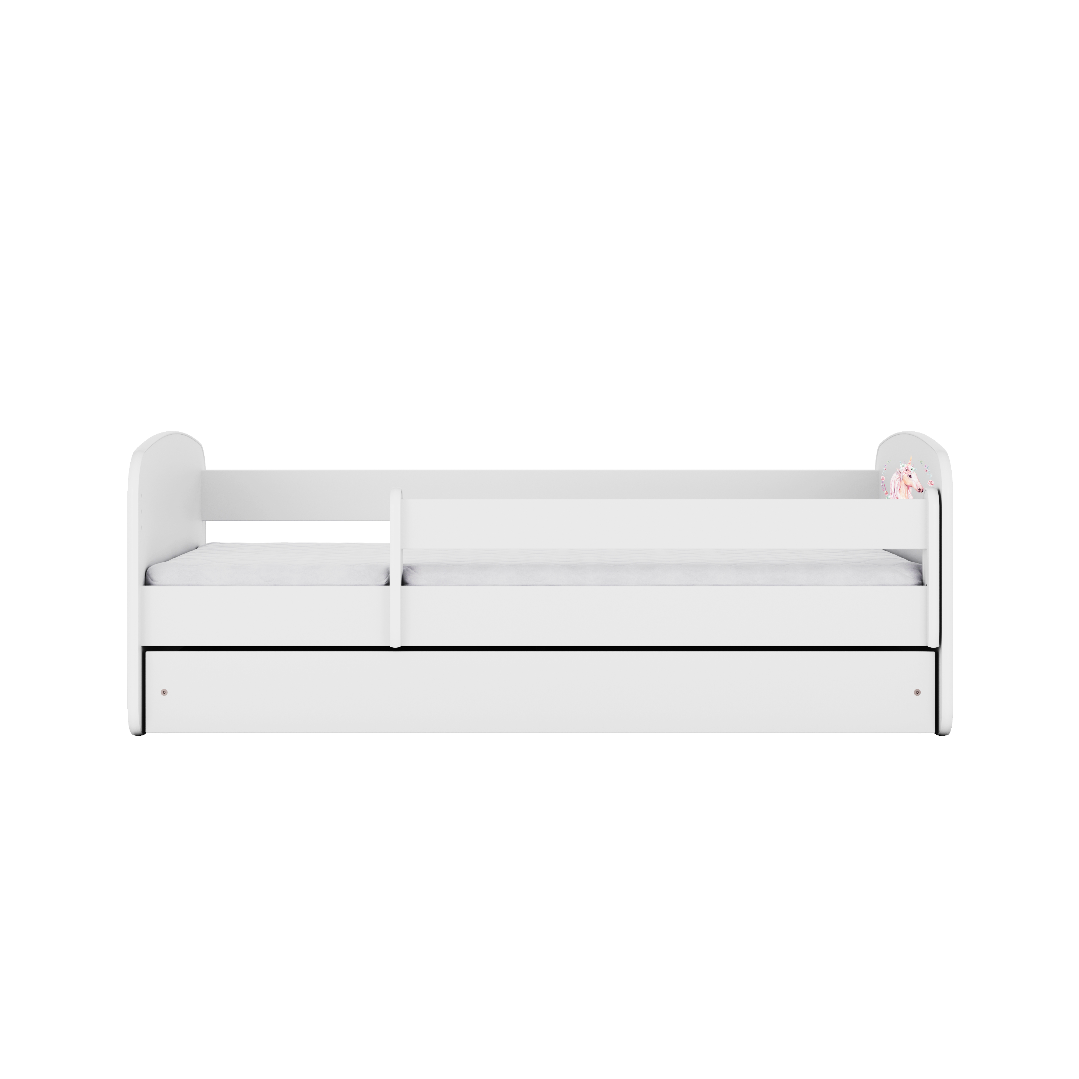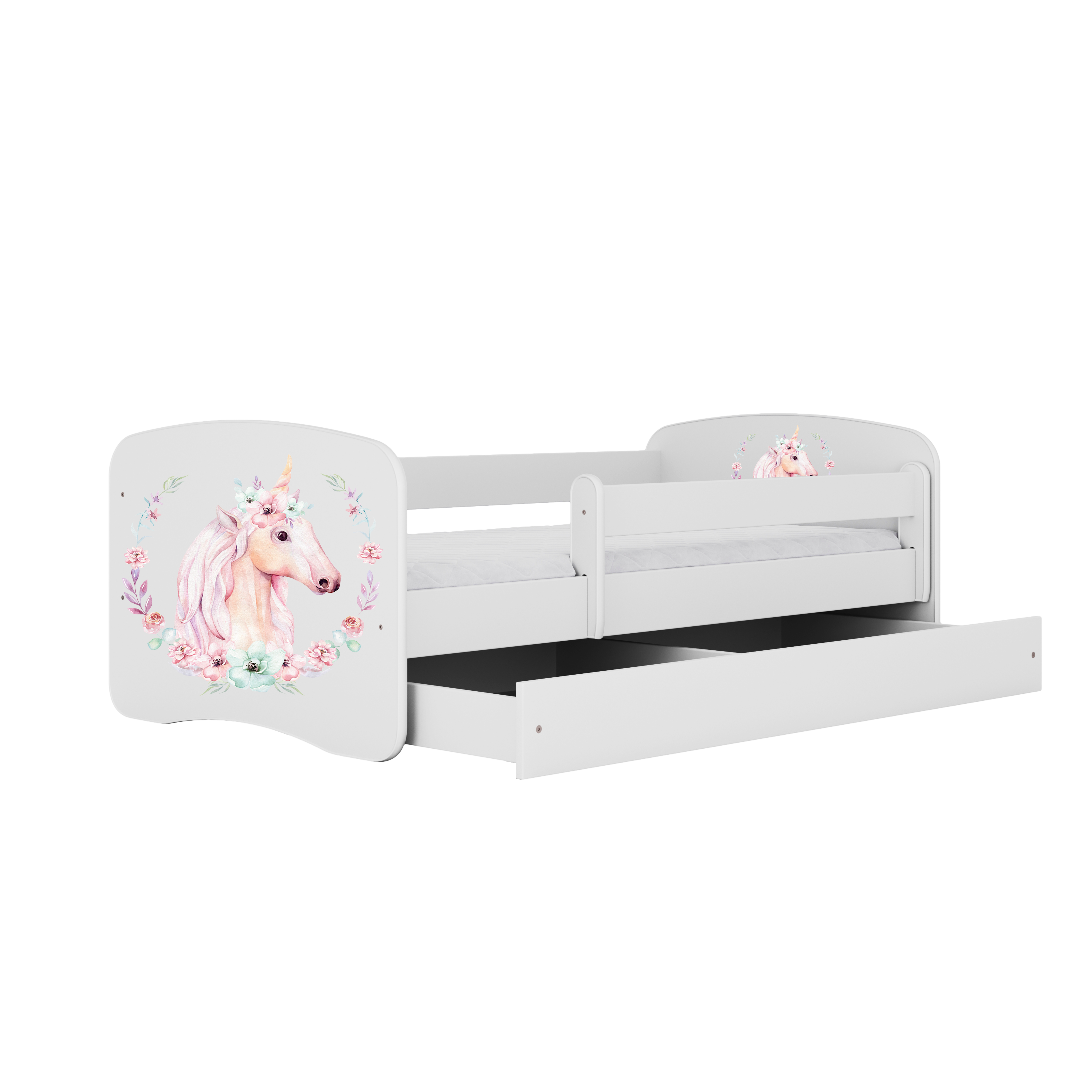Babydreams juniorseng med hest, m. madras, sengehest og skuffe - hvid laminat (140x70)