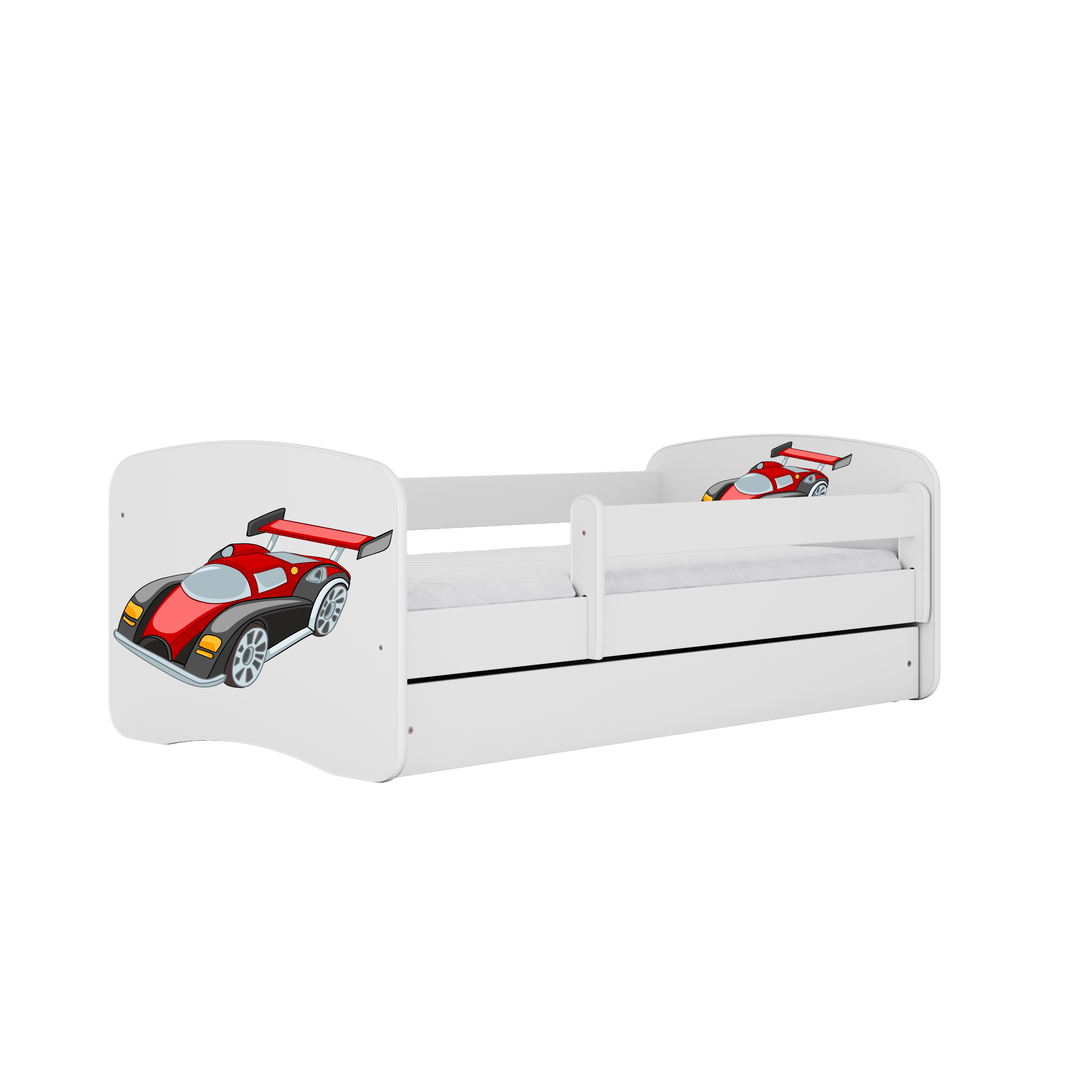 Babydreams juniorseng med racerbil, m. madras, sengehest og skuffe - hvid laminat (160x80)