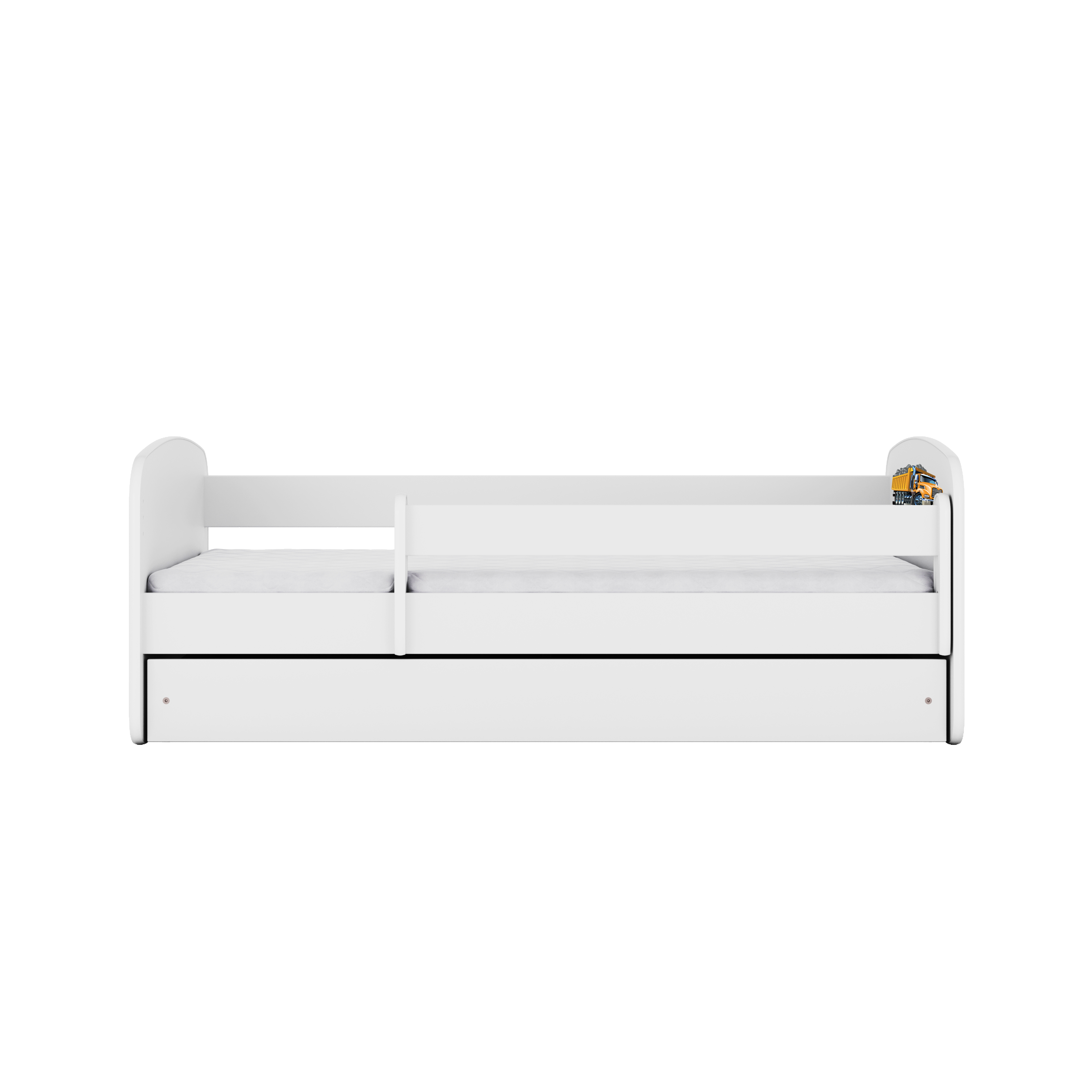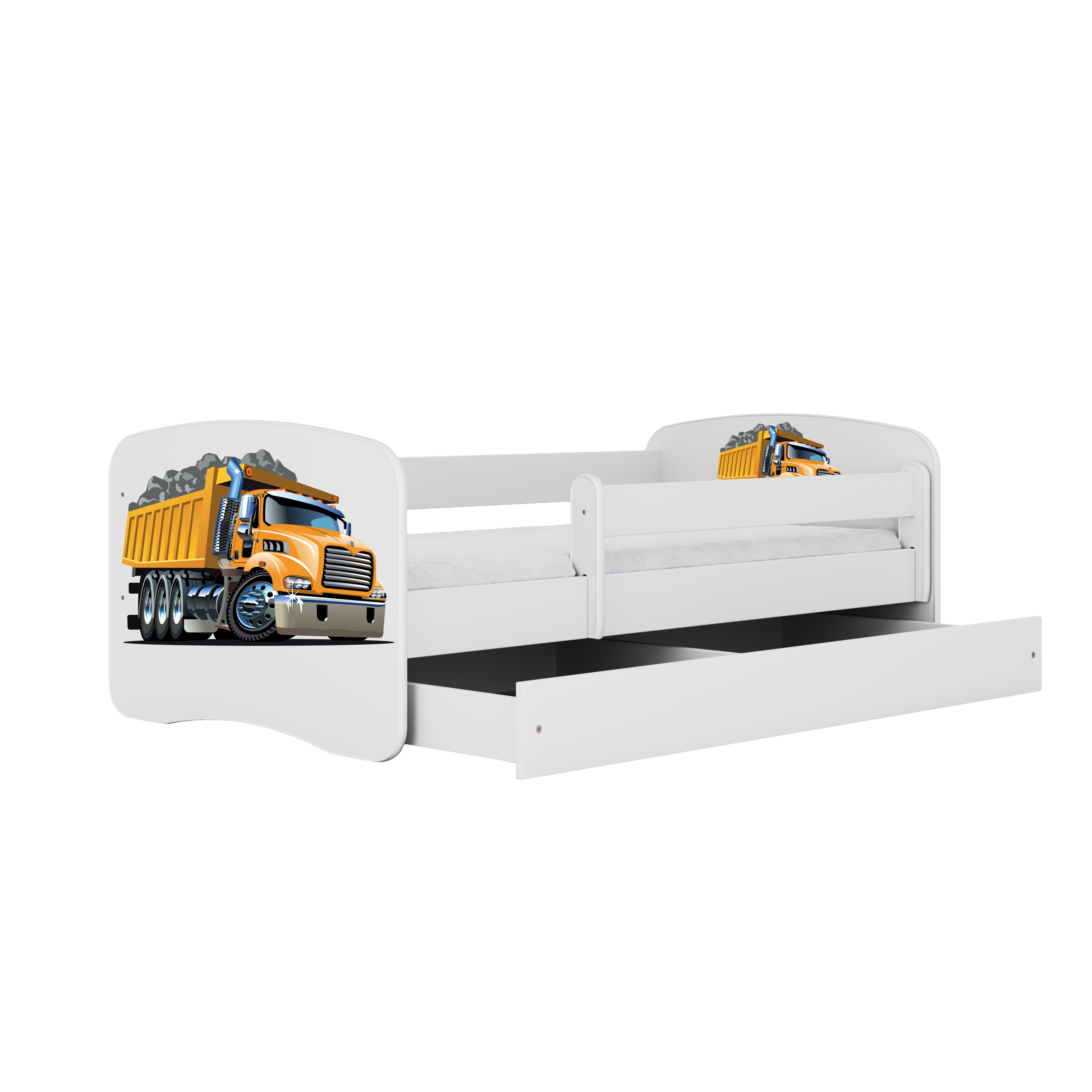 Babydreams juniorseng med lastbil, m. madras, sengehest og skuffe - hvid laminat (180x80)