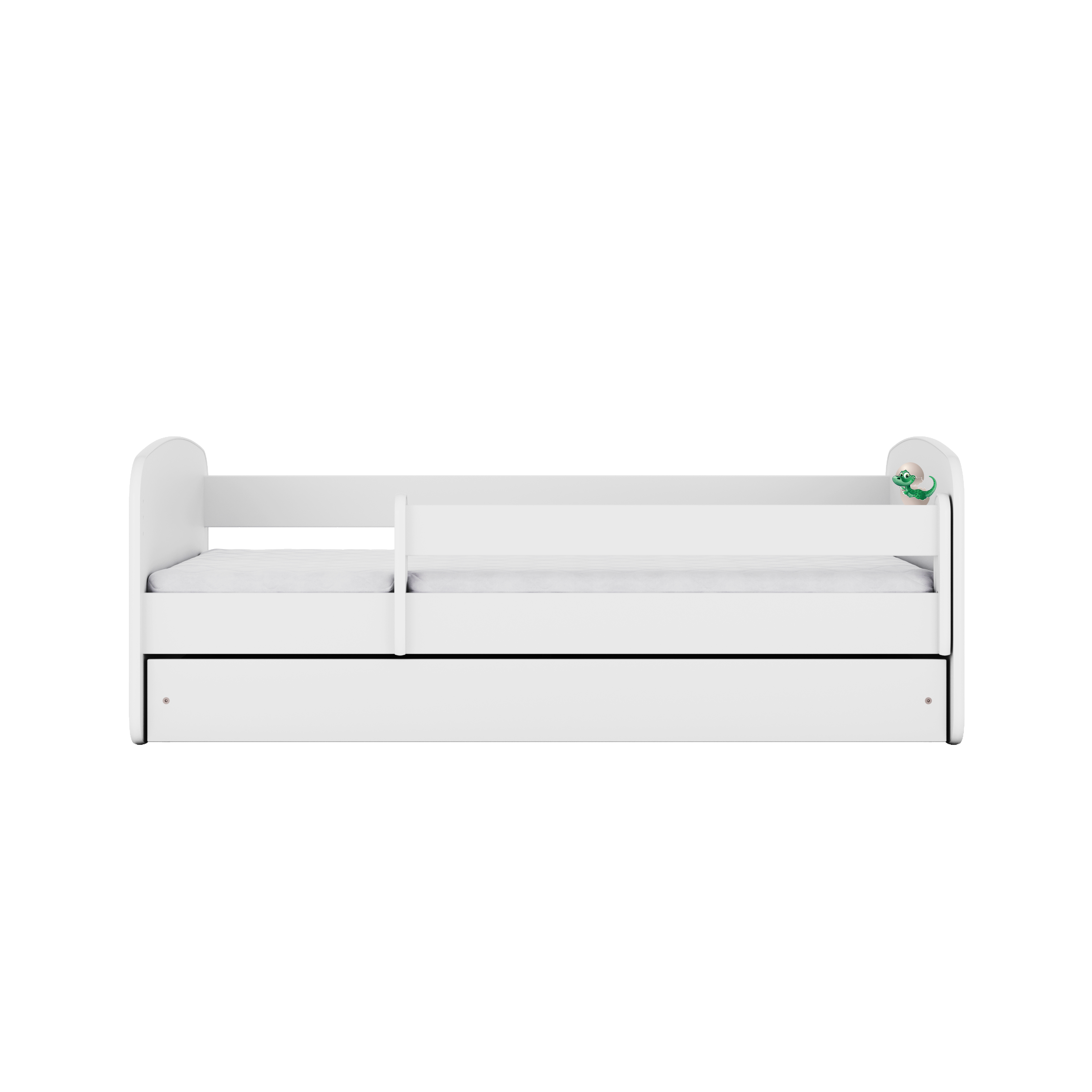 Babydreams juniorseng med lille dino, m. madras, sengehest og skuffe - hvid laminat (160x80)