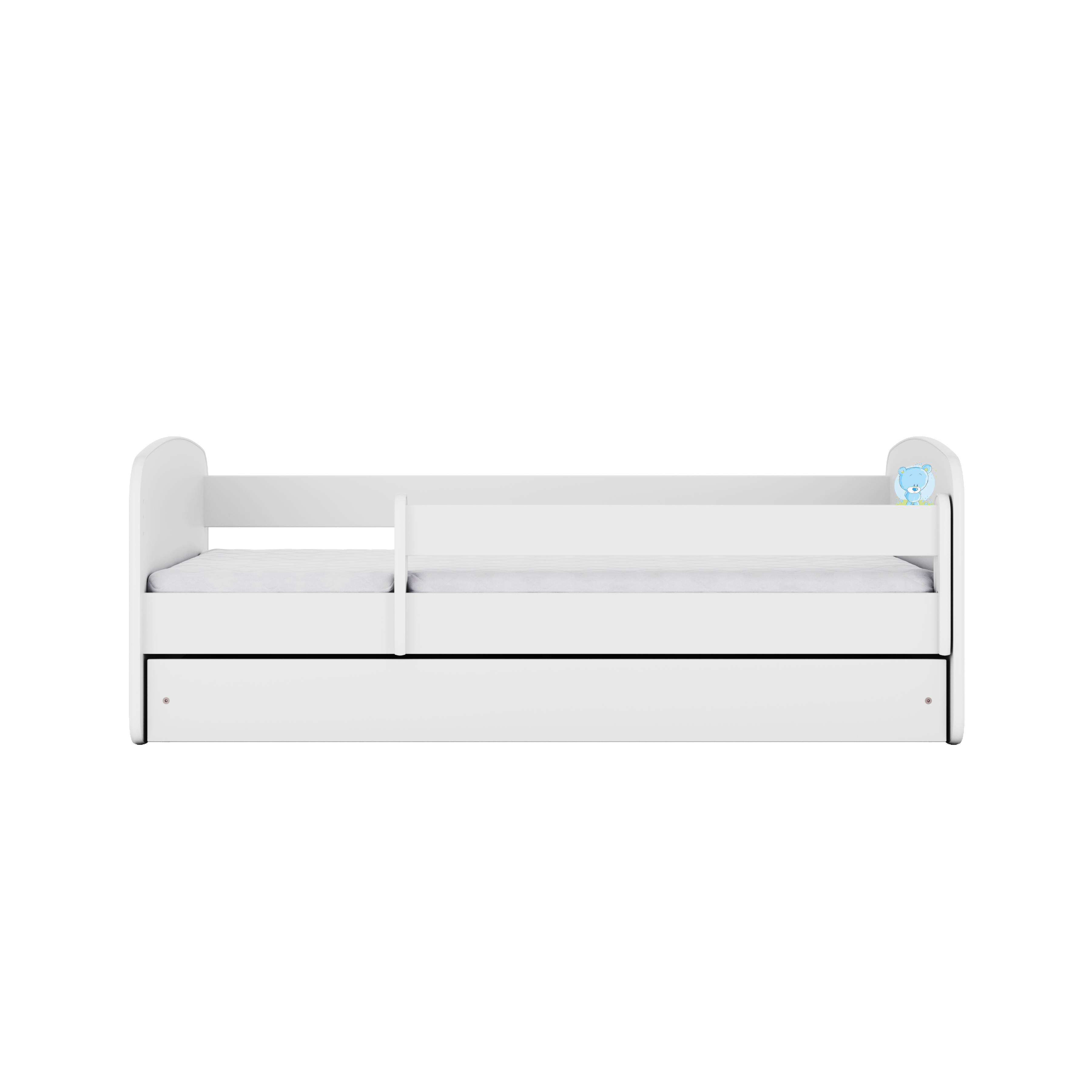 Babydreams juniorseng med blå bamse, m. madras, sengehest, skuffe - hvid laminat (180x80)
