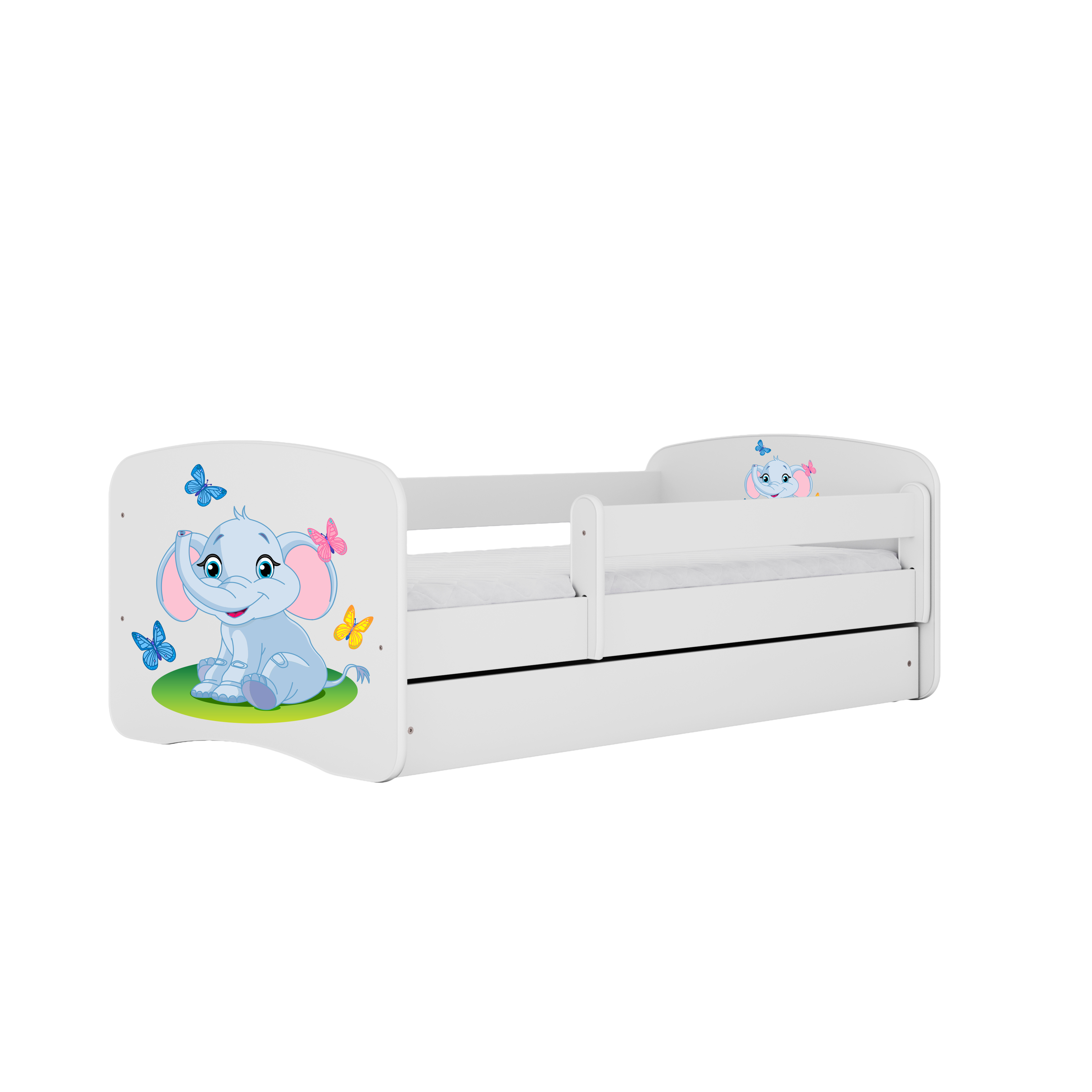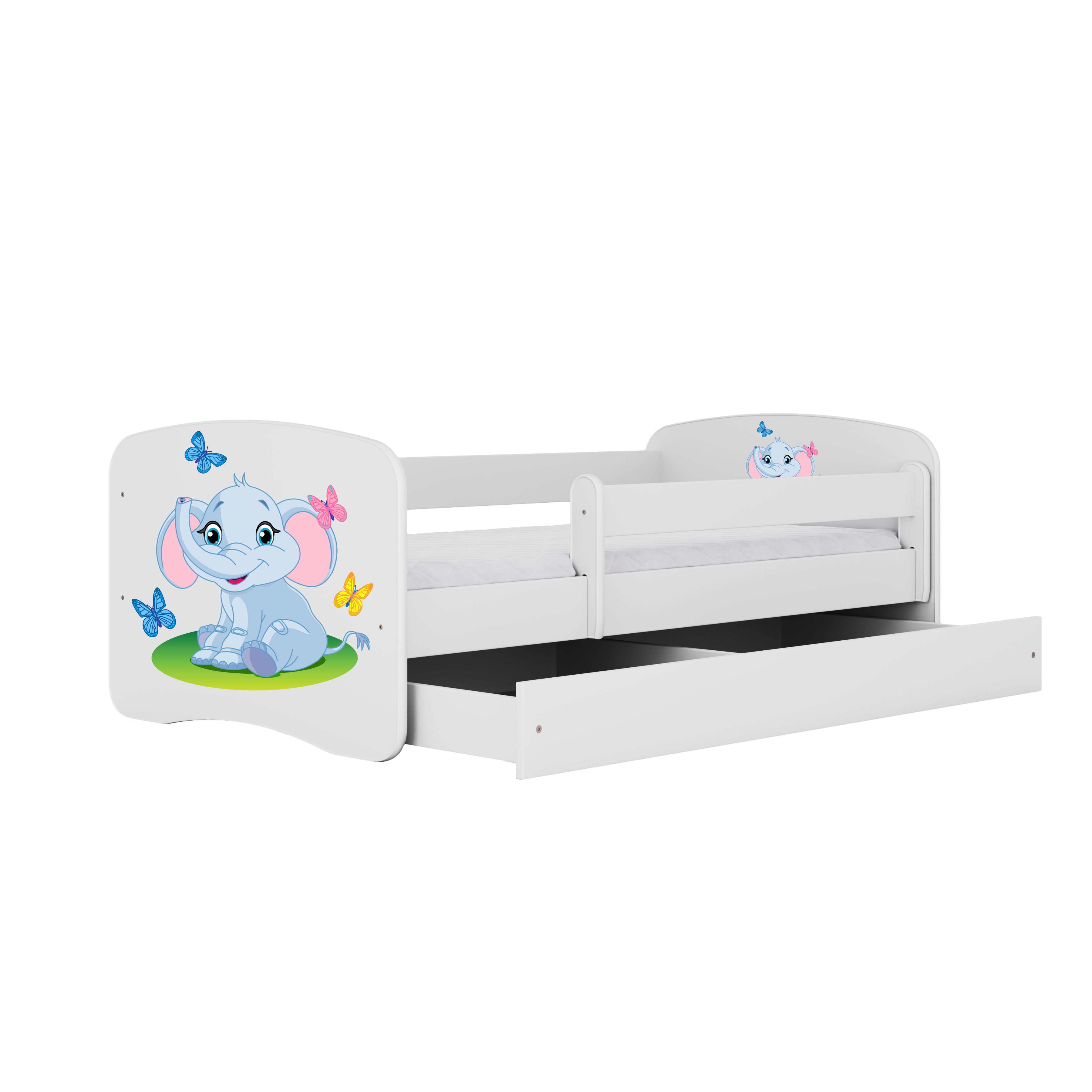 Babydreams juniorseng med elefant, m. madras, sengehest, skuffe - hvid laminat (140x70)