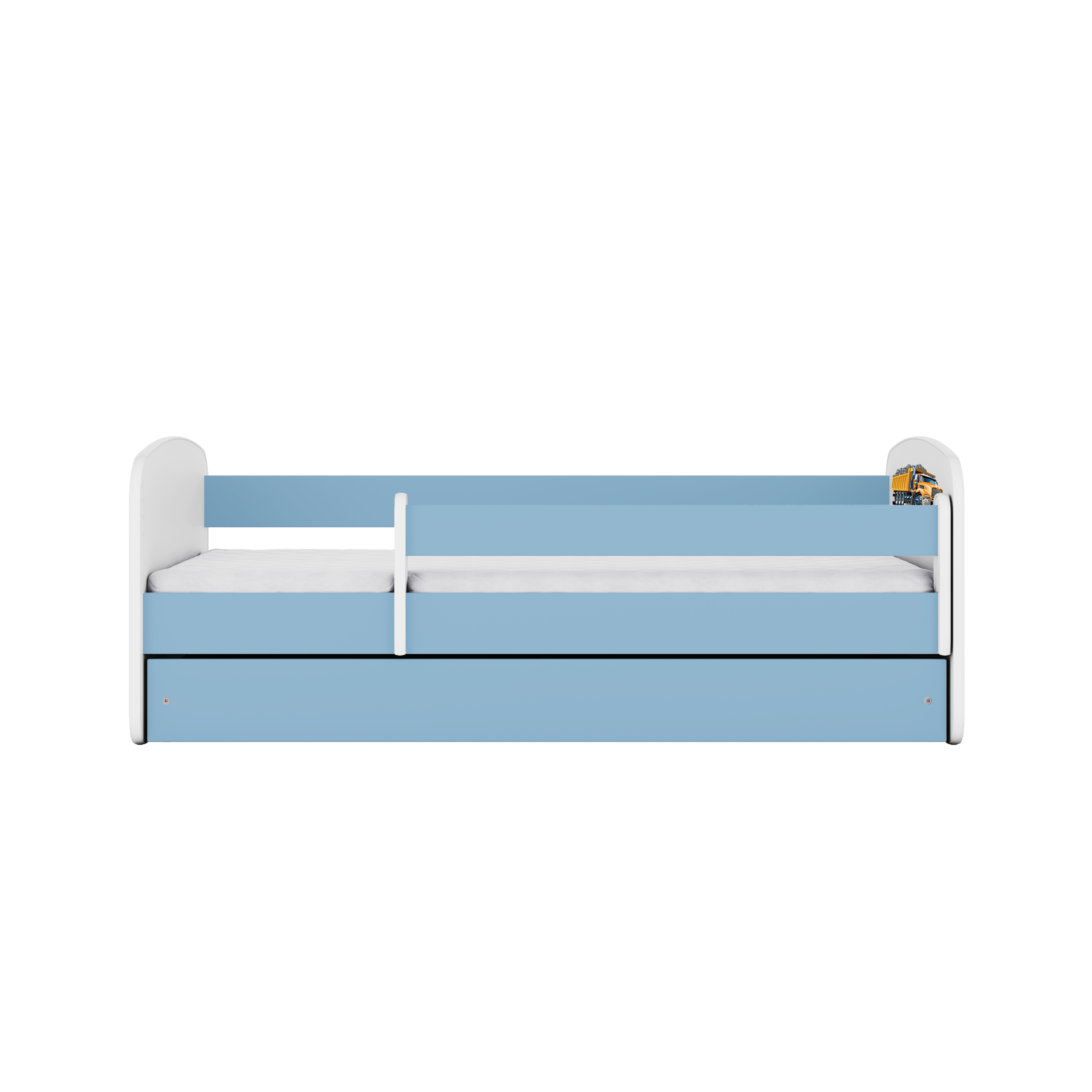 Babydreams juniorseng med lastbil, m. madras, sengehest, skuffe - hvid og blå laminat (160x80)