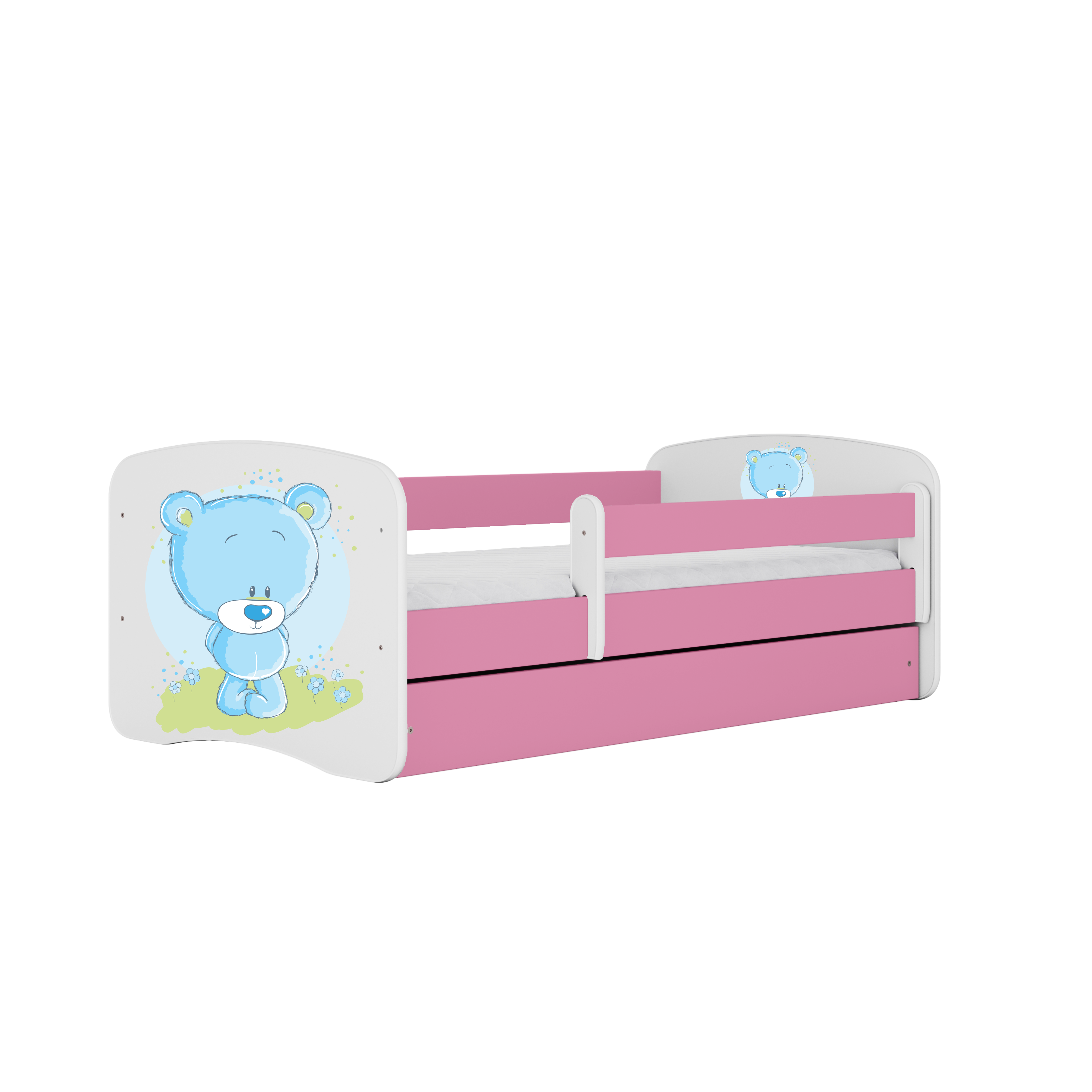 Babydreams juniorseng med blå bamse, m. madras, sengehest, skuffe - hvid og lyserød laminat (180x80)